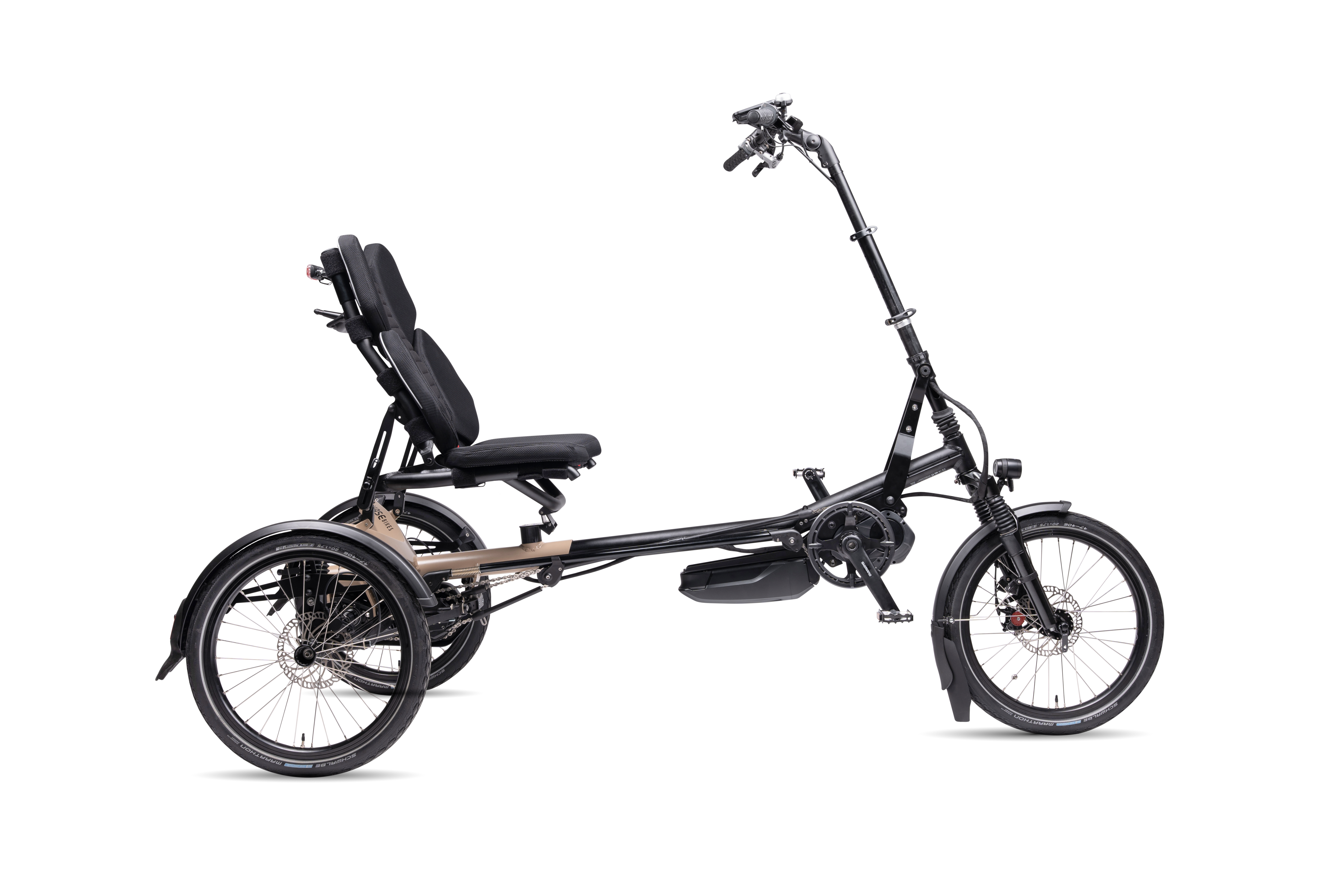 Direction au-dessus du siège – Beige gris RAL 1019 – suspension intégrale – hauteur de siège réglable : 52 ou 60 cm – revêtement de siège Vario Comfort – moteur électrique Pedelec Shimano EP600 Cargo – batterie 630 Wh – chargeur – fourche suspendue Spinner 300 – Shimano Inter5 DI2 – différentiel – cadre en aluminium – freins couplés : levier droit pour les freins arrière hydrauliques, levier gauche pour le frein avant mécanique – garde-boue SKS noir mat – pédalier 170 mm, 44 dents – éclairage alimenté par la batterie moteur : phare B+M IQ-X / + feu arrière B&M Toplight 2C plus – pneus : Schwalbe Marathon
