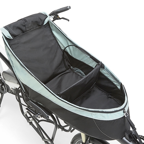 Le Porter Bag est un must comme accessoire pour un usage cargo du Pino. Mis à part quelques modifications minimes et de nouvelles fixations, il est identique à son prédécesseur. Et donc à l'épreuve de la pluie, étanche à la poussière, pliable et capable de supporter 40 kg. Capacité: jusqu'à 120 litres.